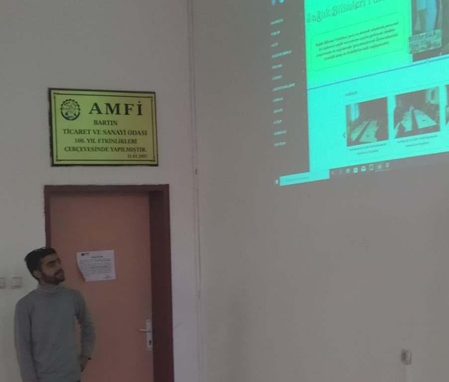Sağlık Bilimleri Fakültesi Hemşirelik 1. sınıf öğrencilerinden Yakup ÖNAL ve Ömer Faruk KOYUNOĞLU tarafından 29.11.2019 tarihinde saat 15:30'da akran eğitimi kapsamında Üniversite, Fakülte ve Bölüm web sayfalarının tanıtımı yapılmıştır.
