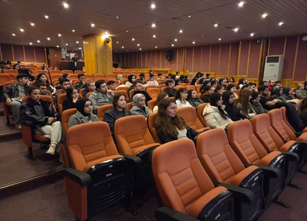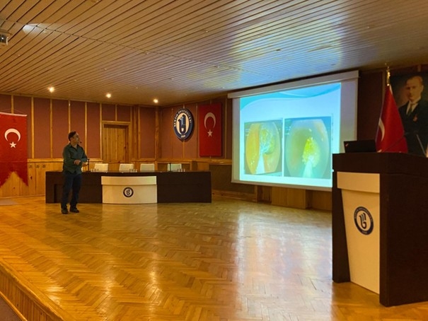Sağlık Bilimleri Fakültesi Hemşirelik Bölümü tarafından Dr. Öğr. Üyesi Özge UÇAR moderatörlüğünde yüz yüze “Gastrointestinal Sistem Anatomisine Yolculuk” semineri, 11 Aralık 2025 tarihinde saat 13:30’da Bartın Üniversitesi Ağdacı Konferans Salonu’nda gerçekleştirildi. Seminere, Bartın İl Sağlık Müdürlüğü Bartın Devlet Hastanesi Genel Cerrahi Uzmanı Opr. Dr. Yüksel DOĞAN konuşmacı olarak katıldı. Seminerde, gastrointestinal sistemin temel anatomisi detaylı biçimde ele alınırken, gastrointestinal hastalıklarla ilgili örnek klinik vakalar incelendi; tanı ve tedavi süreçlerine dair bilgiler paylaşıldı. Düzenlenen seminer, 97 kişinin katılımıyla gerçekleştirildi. Seminer katılımcıların soru cevaplarıyla sonlanırken, Sağlık Bilimleri Fakültesi Dekan Yardımcısı Dr. Öğr. Üyesi Sibel ALTINTAŞ teşekkür belgesi takdim etti.